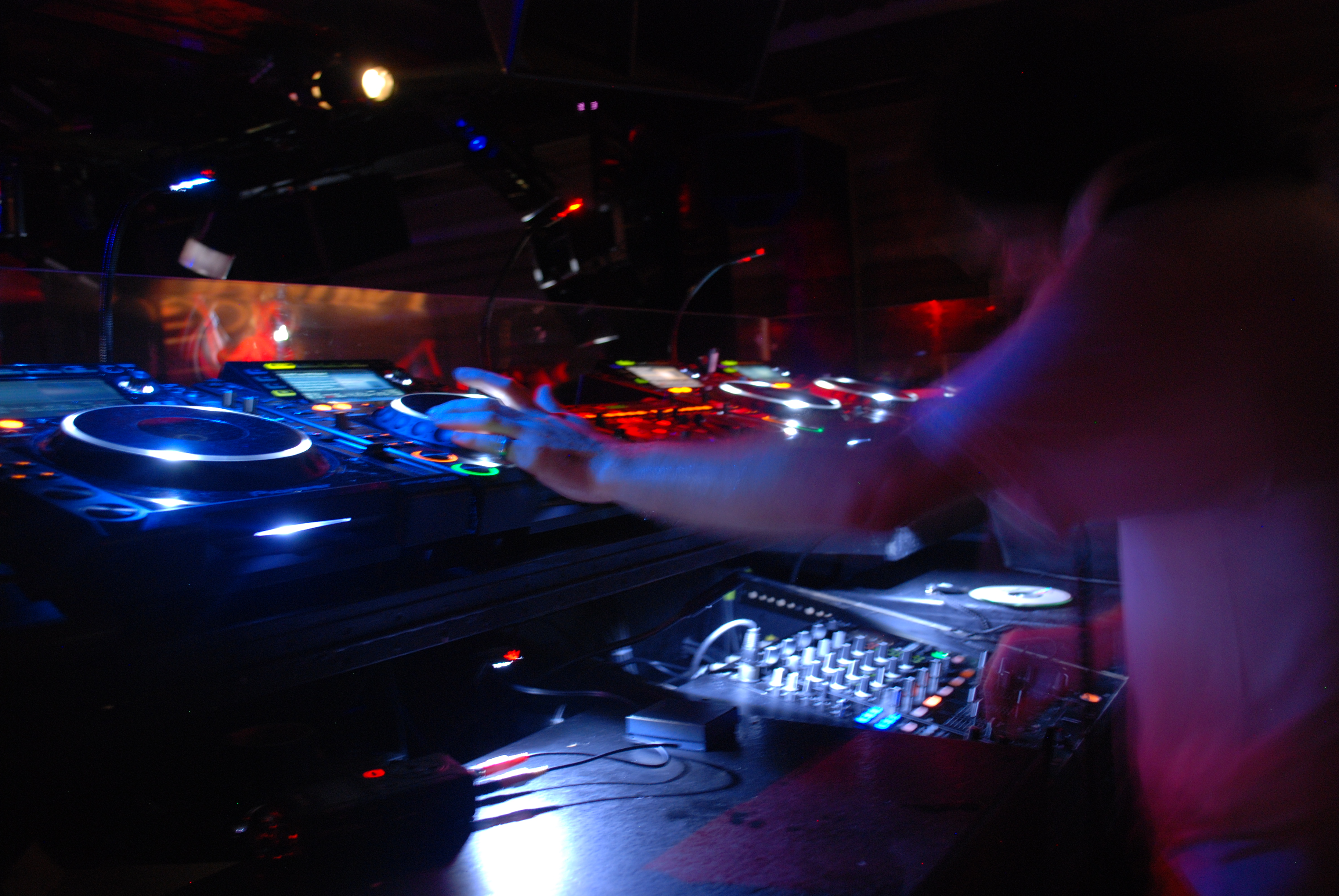 As the master got to work, his casual attitude dropped away, being replaced by an intense focus on the decks, mixer and the crowd. The music turned up the crowd grooved on it and his hands began to move faster & faster.