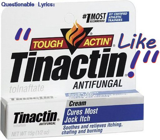I had no idea. I vaguely recalled Tinactin being used in rhymes back when I was in High School, but this is intense. Questionable Lyrics, a segment on Werner von Wallenrod’s ill Hip Hop blog, compiled all of the lyrical utilizations of Tinactin over the course of two decades. The mind reels. Rappers have been using a brand name Jock Itch cure for rhyming purposes for most of my life. And some of these are kind of amazing. Some choice ones are listed below and get at the link here for the full list. Infinite props need to be given for the hours of listening and searching for the word Tinactin.