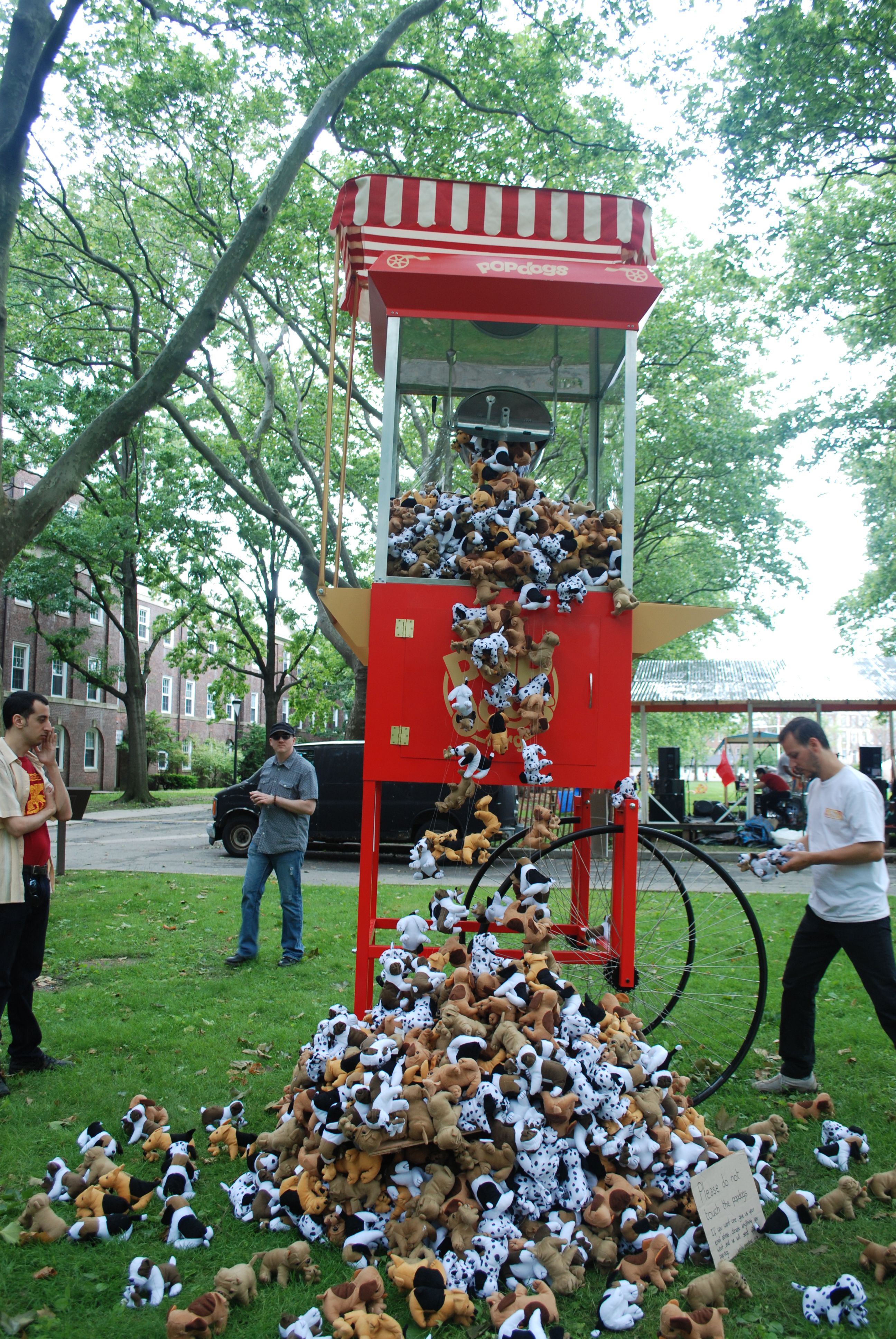 At the sight of the absurdly over-sized PopDogs overflowing with puppies. They were cute, adorable, and populating the scene that pointed directly towards a very specific reminder of the serious problem that is canine overpopulation in cities. The popcorn analogy worked perfectly and the cuteness spilled out until you were reminded about how society digests pets and leaves a gigantic sick feeling in our society. I’d not really prepared for real “in your face” art, reminding me of reality, but then again I wasn’t really sure what to expect at all. However, I was already impressed.